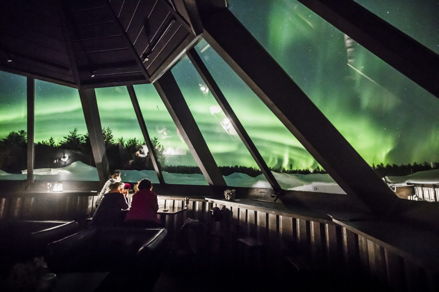 Le bar à boissons le plus cool de la ville ! Le Sky Bar est situé dans l’Arctic SnowHotel, sur les rives du lac Lehtojärvi, à 30 minutes de route du centre-ville de Rovaniemi et du Village du Père Noël. Au rez-de-chaussée, vous trouverez un bar de type lounge qui sert des cocktails avec une touche locale, ainsi que d’autres boissons et de petites collations. Le bar Sky ouvre dans l’après-midi et ferme plus tard dans la soirée. Lorsque la nuit est tombée et que le ciel est dégagé, nous vous recommandons de vous rendre au deuxième étage où vous pourrez, avec un peu de chance, observer les aurores boréales à travers le toit en verre ! Tout au long de l’automne et de l’hiver, c’est l’endroit idéal pour admirer les aurores boréales, loin des lumières de la ville.