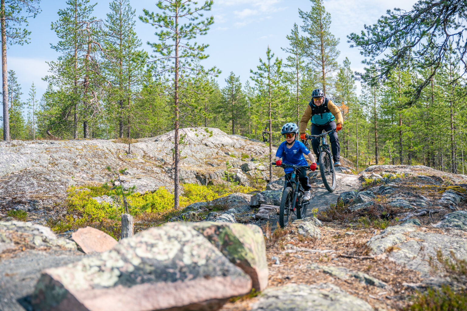 In the forest next to Santa Claus Village, four short and clearly marked mountain biking trails wind through the landscape. Three of them – Loiva, Hupi and Lysti – are one-way trails, while the two-way Luppo trail connects the others. The routes (0.5–1.5 km) run through an enchanting forest with gently rolling terrain, allowing cyclists to enjoy mild curves, rocky sections, and smooth gravel surfaces. The focus is more on fun, movement and a little forest adventure than on competition.
