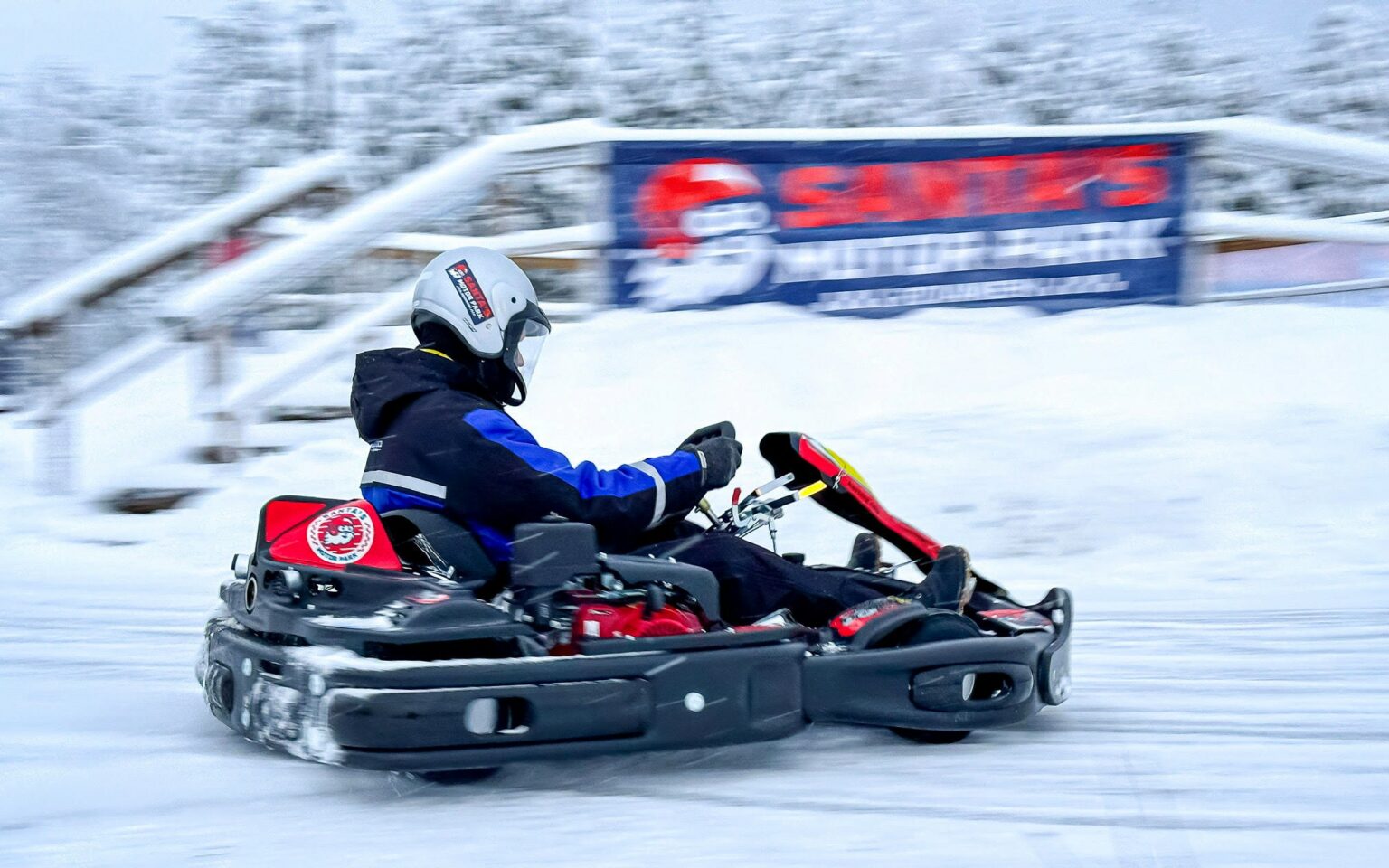 Our Karting cars are high quality and safe to drive. Helmet is necessary and included in the package. Come and experience Santa´s fun ice track karting with your own senses!