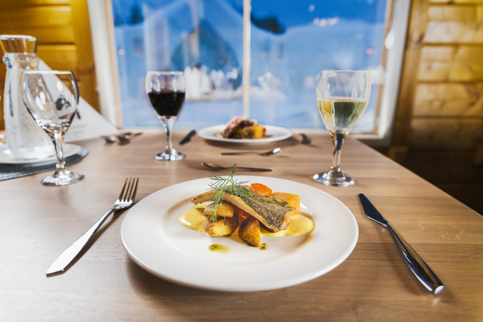 Log Restaurant Lumikartano is made entirely of massive logs, and is designed to produce an experience on it´s own, so is sure to set the perfect mood for dinner. It is located in the main building of the Arctic SnowHotel & Glass Igloos area and it houses also the hotel reception.