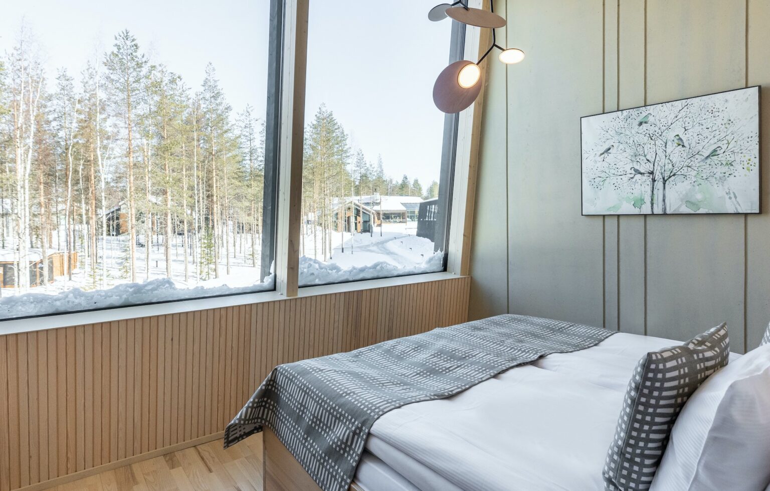 Nova Skyland Hotel warmly welcomes you to the Arctic Circle in Finnish Lapland. The hotel offers a unique experience in high-quality lodgings with Nordic luxury for everyone. Our hotel is dedicated to create a memorable holiday in Santa Claus Village and Rovaniemi for all generations. Embraced by the forest, a lifestyle close to the nature is essential to us. Our modern Scandinavian styled rooms with natural wooden materials and big windows are designed by a Finnish designer for our guests to be able to embrace the Northern sky.