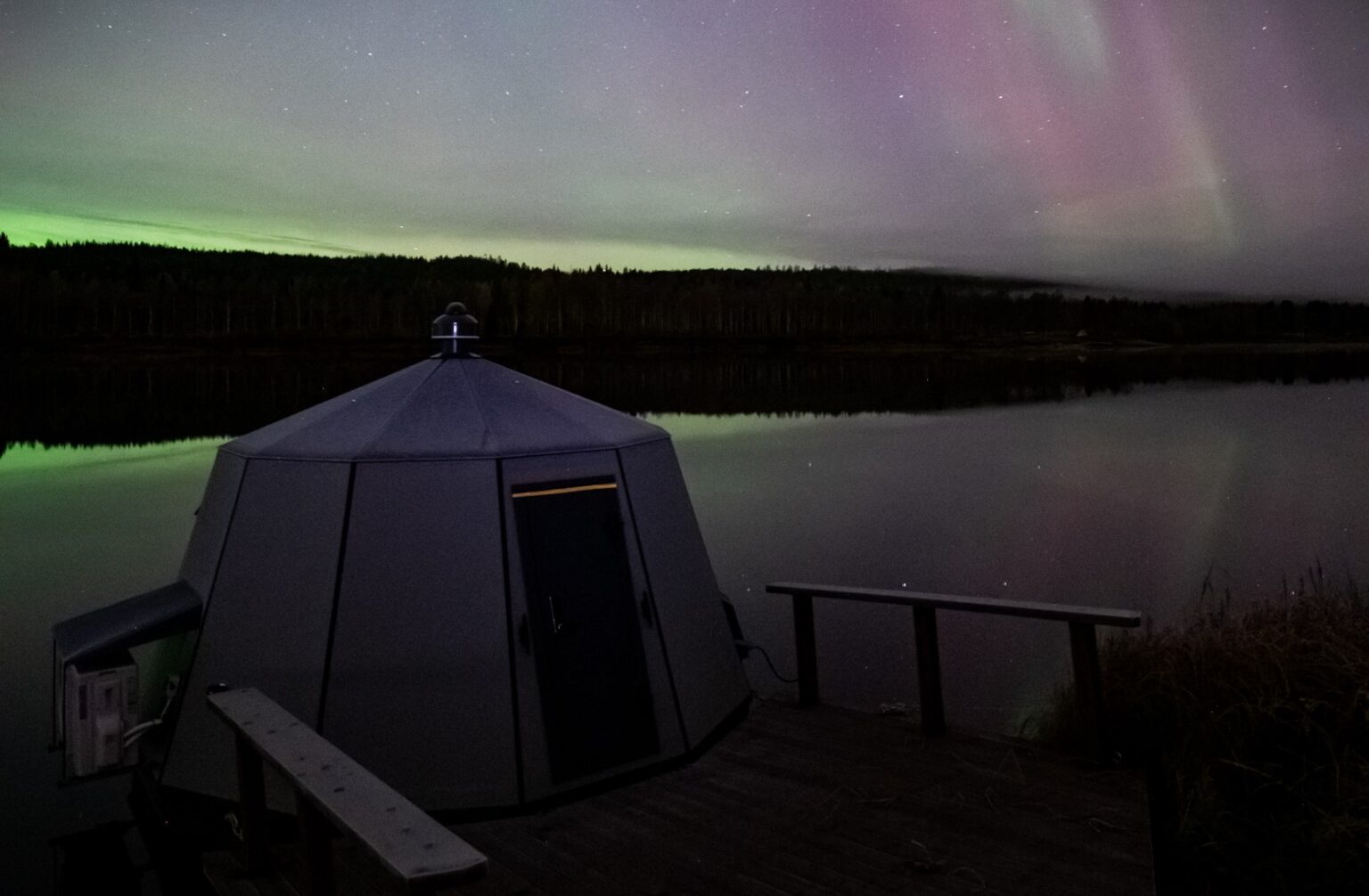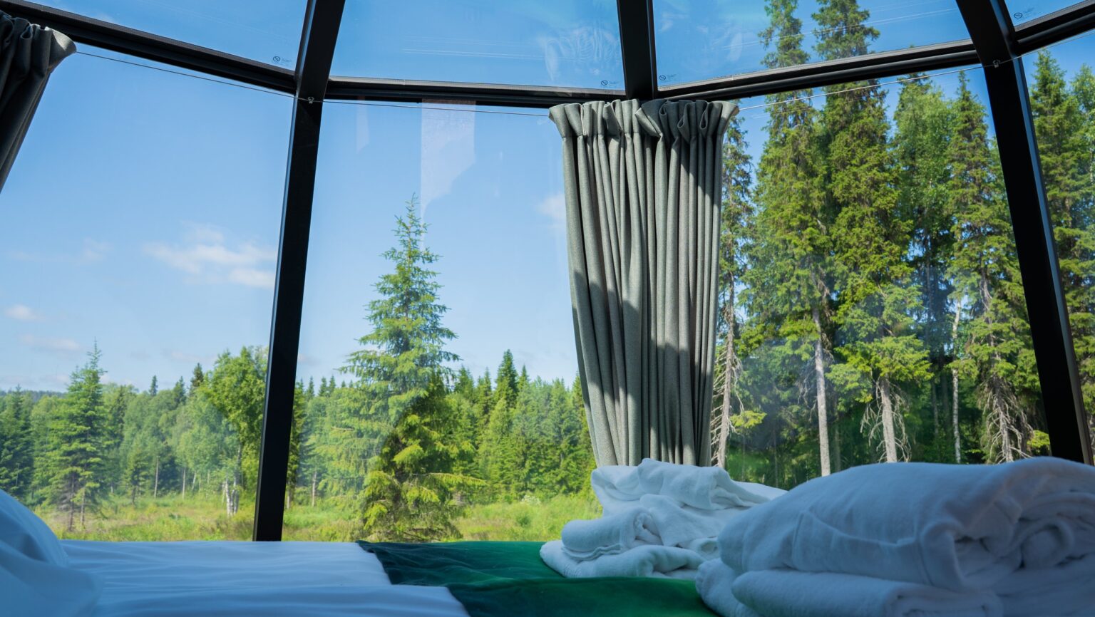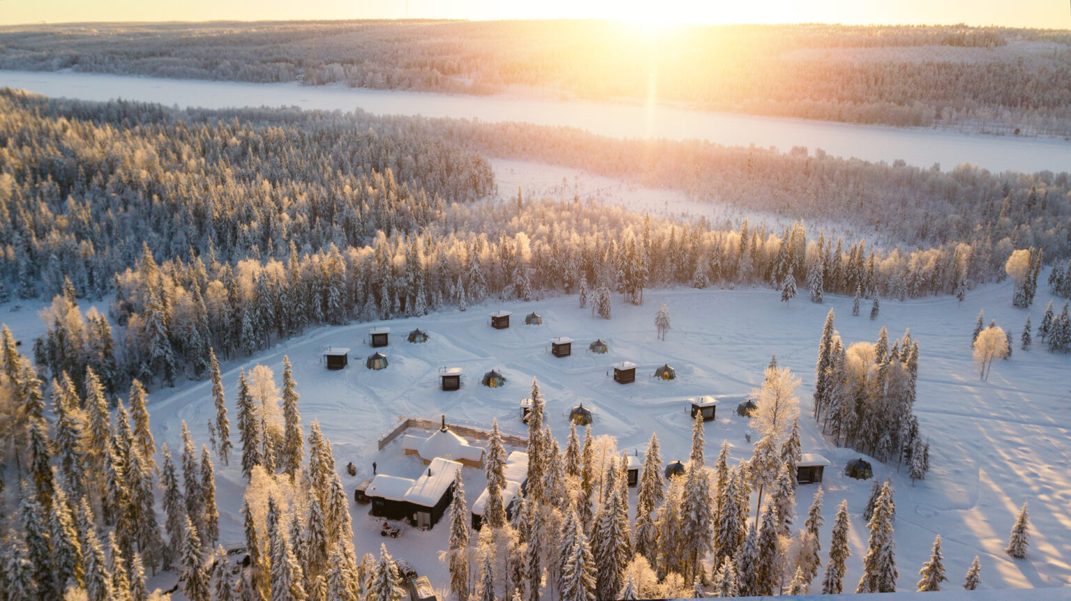 The hotel consists of 12 Scandinavian style Aurora Hut glass igloos with wood-burning saunas, a reception building, a cozy open-fire Kota Restaurant and facilities for our own, exclusive Arctic activities. The location is a quiet and isolated place in the middle of beautiful forest, between the Ounasjoki river and Nuuksvaara hill, about 15km away from the Rovaniemi city area and 19 km from Santa Claus Village.