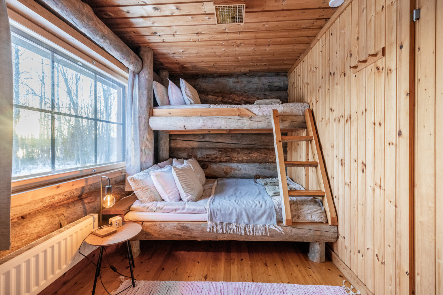 Villa Sieripirtti’s charming log cabin and separate sauna cottage are peacefully located by the Kemijoki River, just a 20-minute drive from Santa Claus Village. Here, the tranquility of Lapland’s nature meets modern comfort – the perfect setting to relax and unwind.