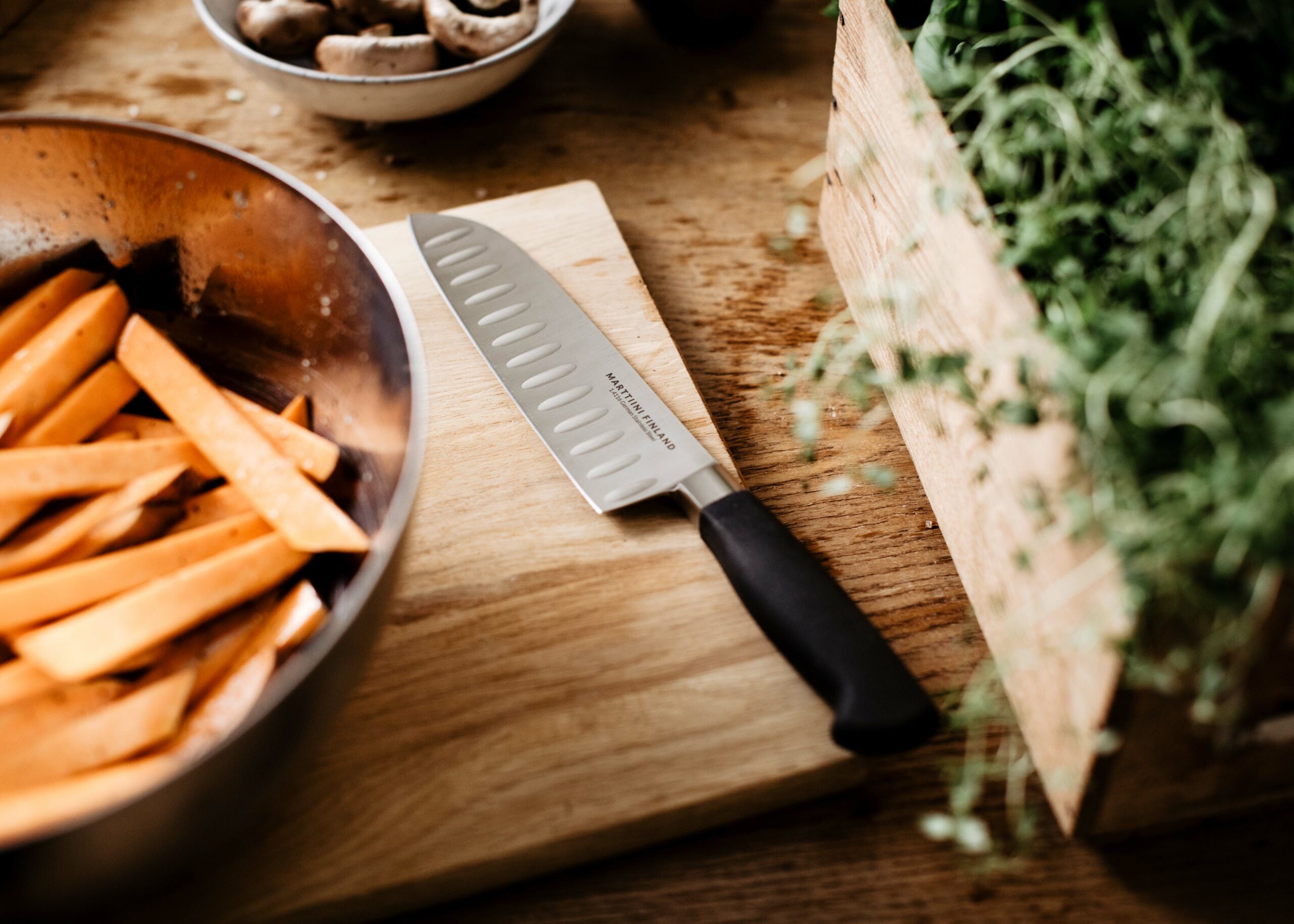 In our vast selection, you will find traditional Lapp knives and Finnish puukko knives, kitchen knives, filleting knives, hunting knives, folding knives, and mesmerizing design knives. Marttiini’s knives are fit for many tasks – but they are most at home in the same place their inspiration comes from: the wilderness.